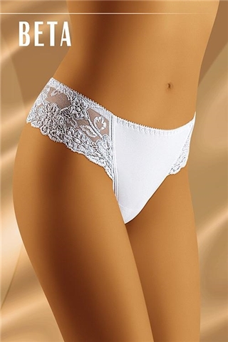 Luxusní krajková sexy tanga Wolbar Beta. Dámská tanga jsou vyrobená z velmi příjemného materiálu kombinovaného s luxusní elastickou krajkou. Dostupná v barvě bílé.