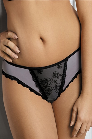 Dámské kalhotky 1310 Ava - jsou vyrobeny z velice příjemného a pohodlného materiálu - okraje nohaviček je lemované krajkou - přední středová část kalhotek je ozdobena jemnou síťovou krajkou s květinovým vzorem - zadní část kalhotek je hladká a v černé barvě