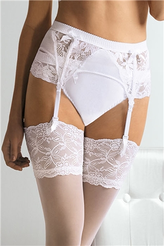Dámské kalhotky 1314 Ava - přední část z lesklého mikrovlákna - zdobené dvěma mašličkami - boční i zadní část zdobené krajkou květinového motivu