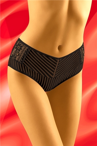 Krásné dámské kalhotky eco-PA Wolbar jsou vyrobeny z tkaniny s jemným žebrovaným vzorem. Po bocích je dekorativní květinová krajka. Kalhotky jsou velmi pohodlné.