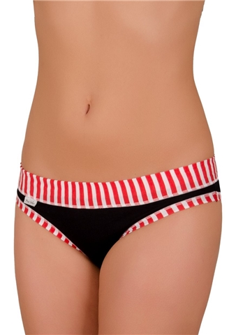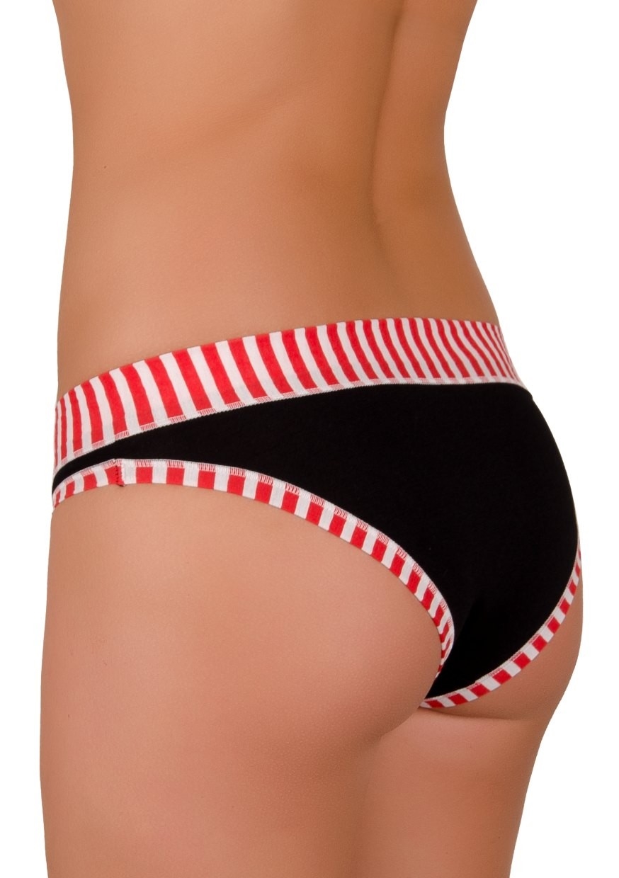 Dámské bavlněné kalhotky s širokým elastickým lemem v pase se vzorem proužku. Vnitřní část rozkroku kalhotek je podšita bavlněnou látkou.