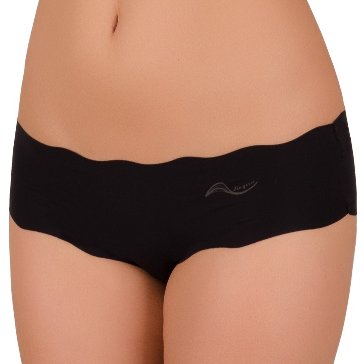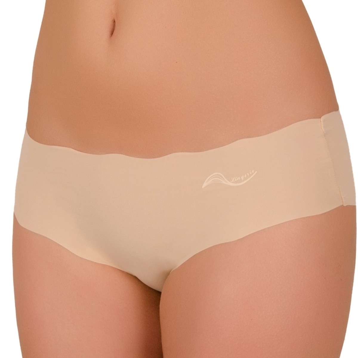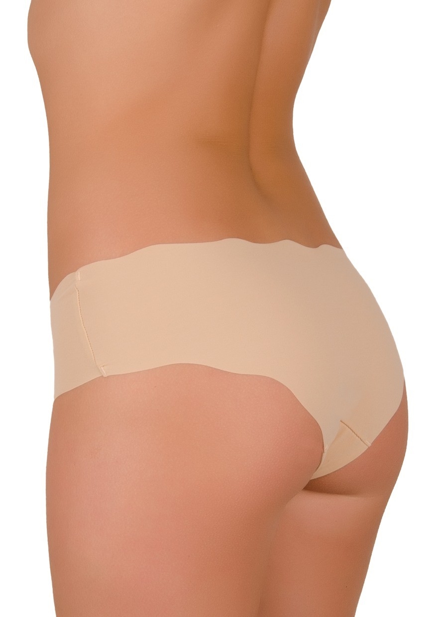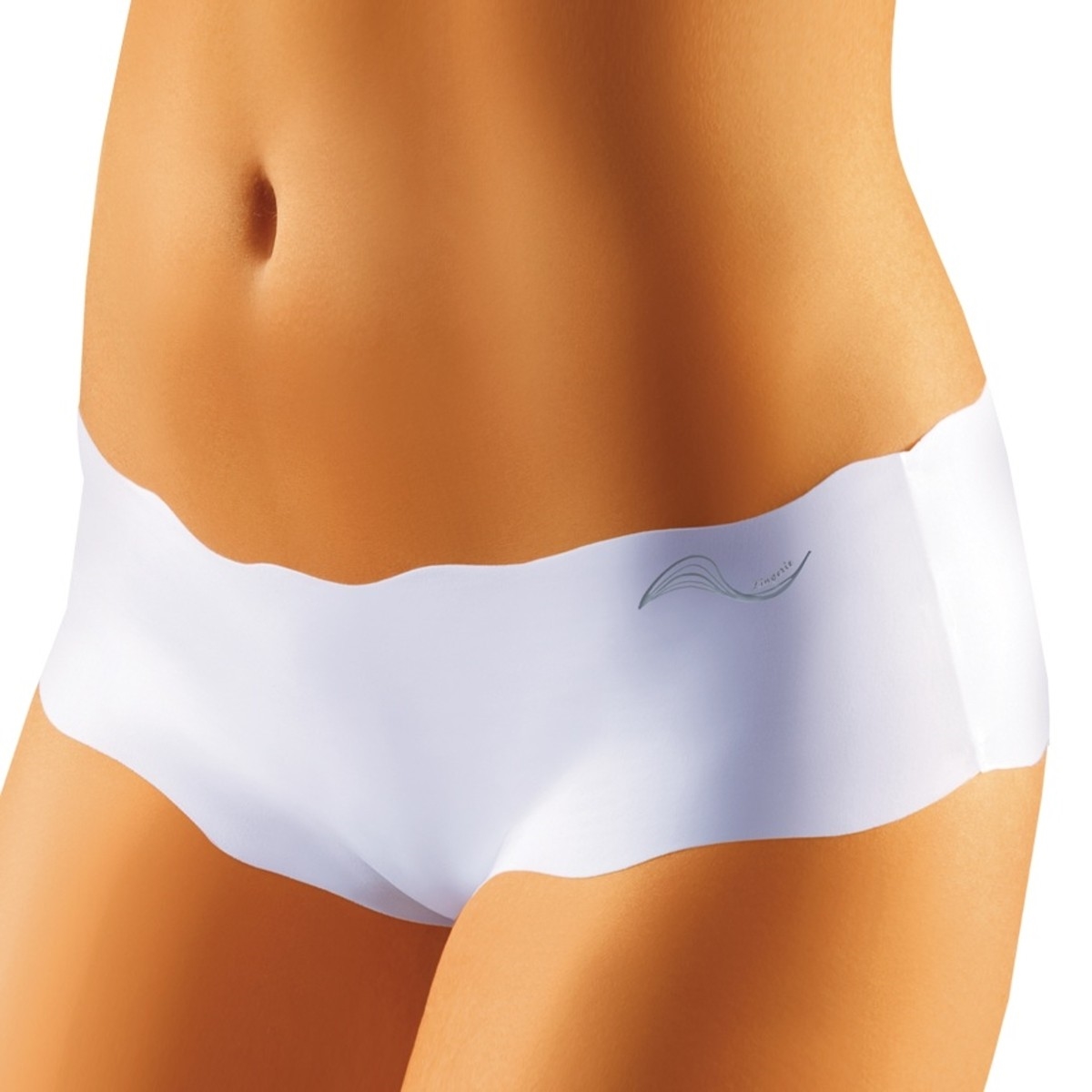 Dámské laserové kalhotky s nohavičkou a potiskem vlnky na boku kalhotek. Tvar vlnky na okrajích kalhotek byl vytvořen speciální laserovou technologií. Díky tomu se kalhotky na koncích netřepí a nemusí být začištěny švem. Toto spodní prádlo není vidět pod svrchním oděvem. Vnitřní část rozkroku kalhotek je podšita bavlněnou látkou.