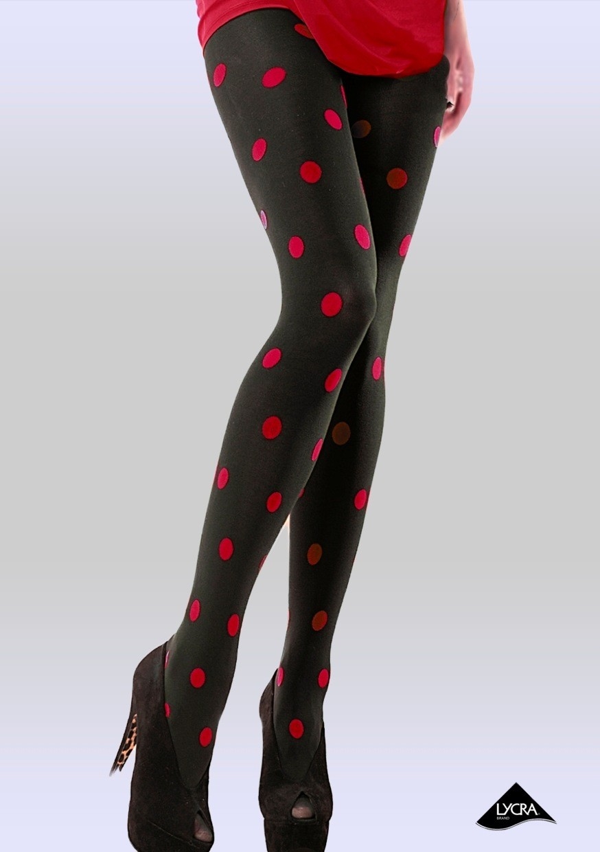 Dámské vzorované punčochové kalhoty z mikrofibry vyrobené technologií Lycra 3D. Dámské jednobarevné punčocháče jsou zdobené barevnými puntíky. Punčocháče jsou vhodné pro podzimní a zimní období.