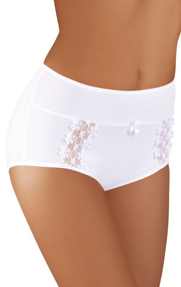 Kalhotky dámské. Extra vysoké. Zdobené krajkou. Ideálně drží na těle a kvalitní bavlna dodává pocit pohodlí a komfortu. 92% Bavlna + 8% Elastan/ Lycra 100 bílá 901 černá S, M, L, XL, XXL, XXXL, XXXXL