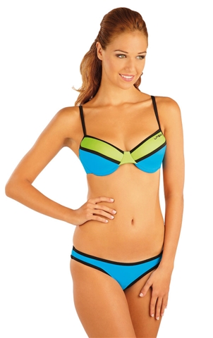 Plavkové kalhotky bokové. Lemování. Potisk. Chloruodolný materiál. 80% Polyamid + 20% Elastan/ Lycra Xtra Life Tyrkysová + černá. 36, 38, 40, 42, 44