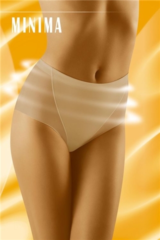 Dámské stahovací kalhotky Minima Wolbar z ultra tenkého materiálu, řezaného laserem s plochými švy, díky kterým jsou ideální pod oblečení. Velmi silně stahují boky, pas a břicho.