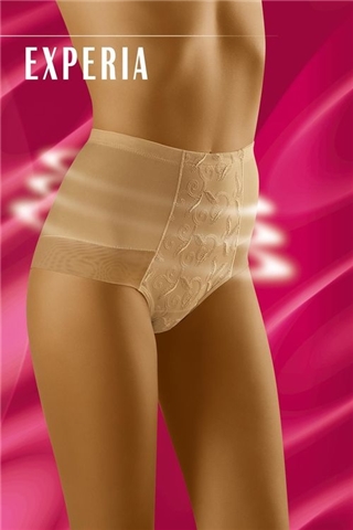 Dámské stahovací kalhotky Experia Wolbar vyššího střihu s plochými švy, díky kterým jsou ideální pod oblečení. Na přední straně jsou zdobené krajkou s květinovým motivem. Velmi silně stahují boky a břicho.